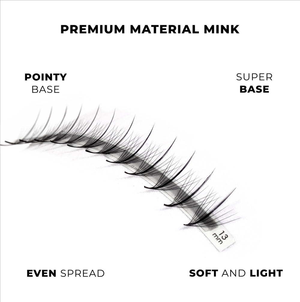 - The lashes are meticulously crafted from the finest Korean PBT by skilled artisans, offering your clients a silky feeling lash with a light glue bonding at the base.